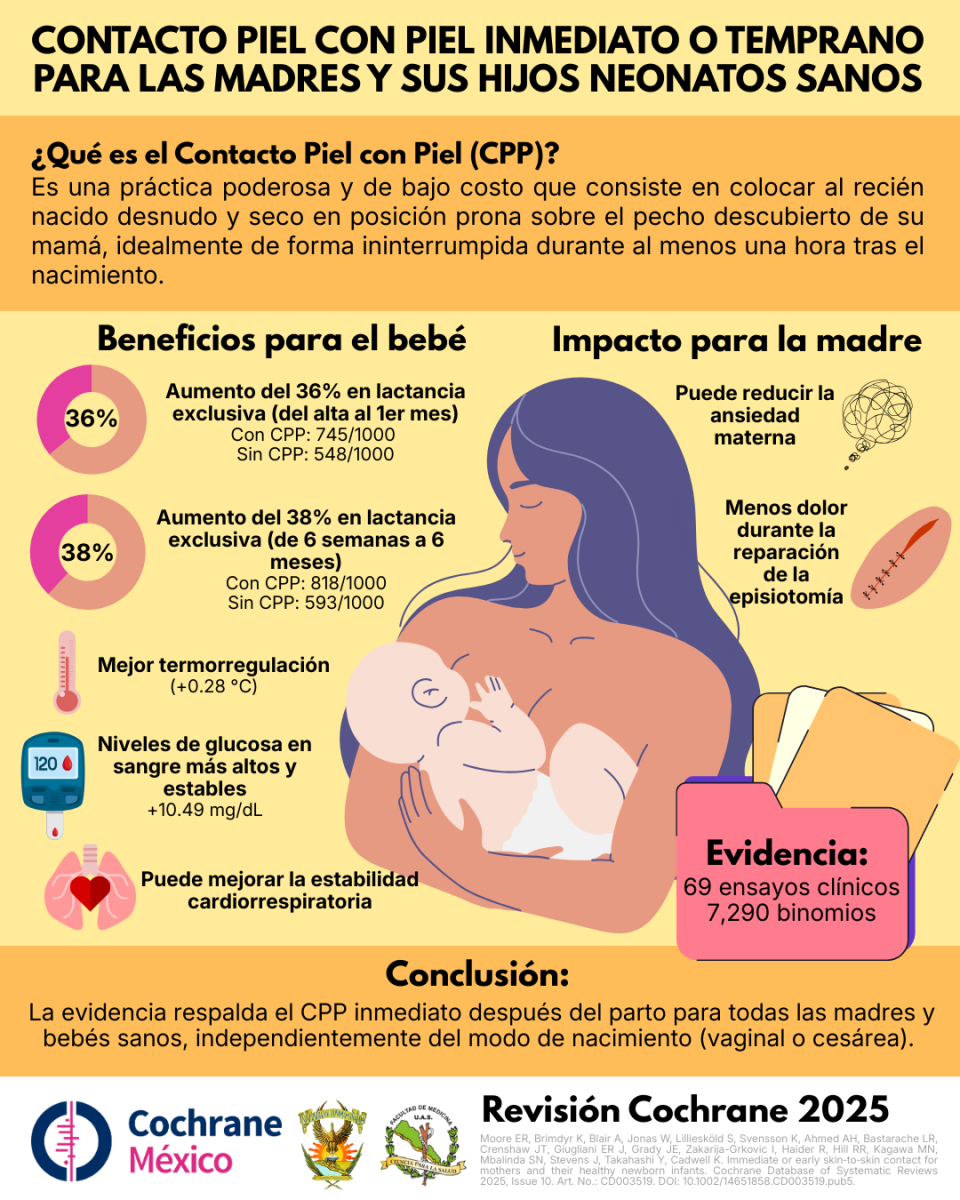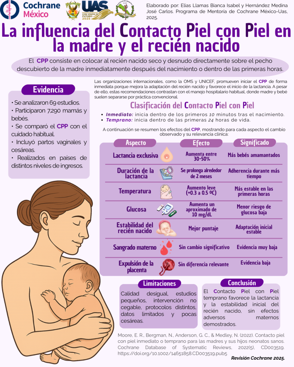 Más de 60 infografías concurrieron al certamen, presentando distintos formatos visuales basados en la reciente revisión sistemática Cochrane Contacto piel con piel inmediato o temprano para las madres y sus hijos neonatos sanos.